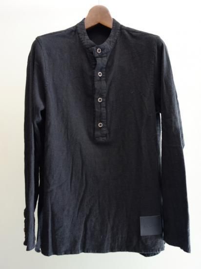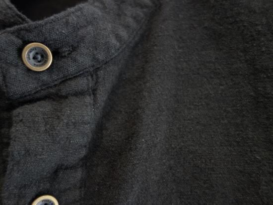 ISAMU KATAYAMA BACKLASH ウールコットンリネン製品染めノーカラーシャツ(1625-02)BLK
