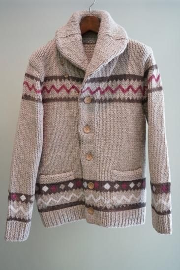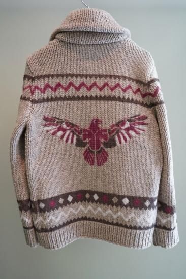 ISAMU KATAYAMA BACKLASH シェトランドウール手編みスプレープリント カウチン(K760-01)