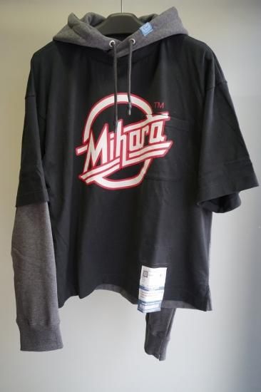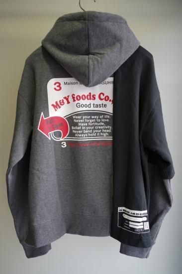 裏毛スウェットパーカーとTシャツをドッキングしたミハラヤスヒロらしいプルオーバーフーディ。オーバーサイズでフロントロゴプリント&バックプリントをあしらったユニークでポップなデザイン、左袖はTシャツ、スウェット両方の袖に腕を通すことができます。