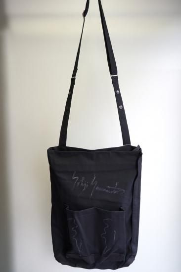 ヨウジヤマモトを象徴するウールシワギャバを使用した2WAYバッグ。今季主流の大きめのバッグの提案です。長さ調節可能なショルダーがスナップでウェストベルトループにできます。フェイスには手書きのシグネーチャロゴがあしらわれ、二つのポケットを設置。ワンフロアで収納力があり、やや大きめのファスナー付のポケットがあります。コレクションピース。