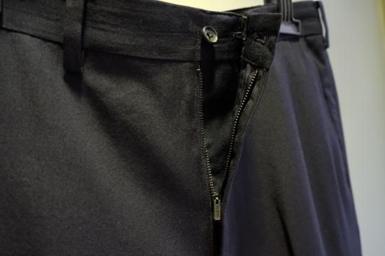 天然素材にこだわったウールギャバ生地で仕立てたオールシーズン着用可能なセットアップパンツ。膝下までのキュプラ裏地の快適な穿き心地、ウェスト裏は滑り止め、付属ボタンはホーンボタンを使いヨウジヤマモトらしい上品な雰囲気を感じさせる逸品。ノープリーツで程よいタイトシルエットが魅力です。