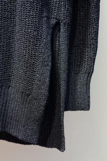 和紙とエステルの特殊糸をローゲージの片畦で編み立てたプルオーバー。和紙のサラっとした肌触りの清涼感、落ち感のあるシンプルなデザイン、片サイドはスリット入りです。