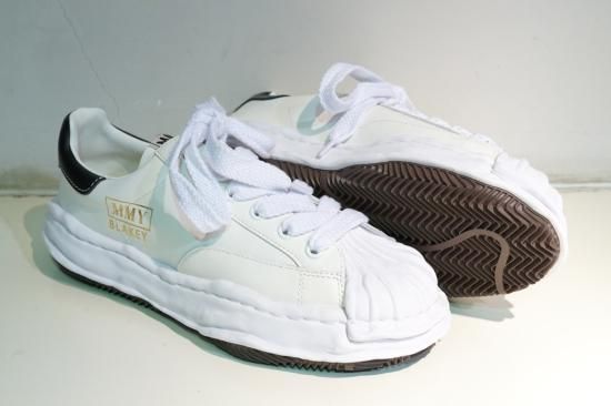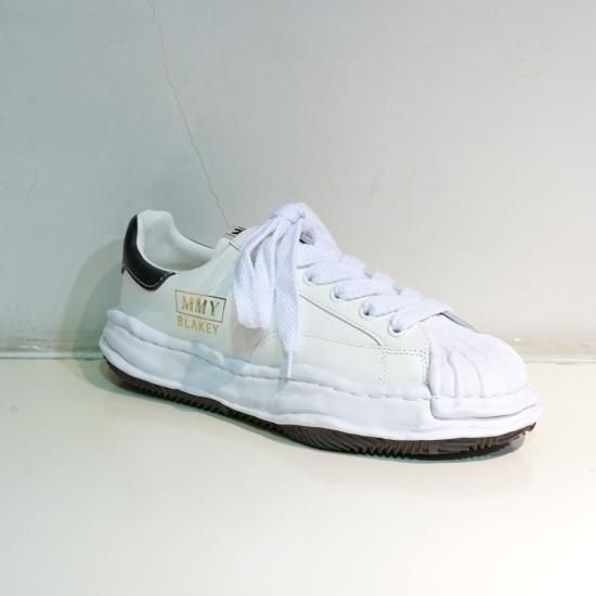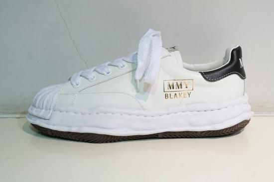 "ブレイキー" オリジナルソールレザーローカットスニーカー。デザイナー自身が粘土で型取った、ブランドオリジナルのソールを使用したスニーカー。"ブレイキー"モデルのレザーローカットスニーカー。MMYとともにモデル名がプリントされています。22-23AW