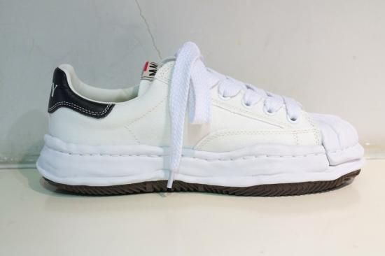 "ブレーキー" オリジナルソールキャンバスローカットスニーカー。デザイナー自身が粘土で型取った、ブランドオリジナルのソールを使用したスニーカー。キャンバスモデルローカットスニーカーです。MMYとともにモデル名が刺繍されています。