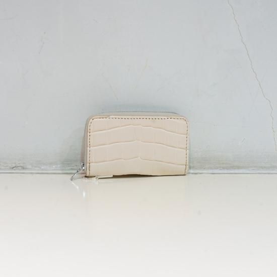 エキゾチックレザーの最高峰クロコダイルの皮革を使用したコインケース。野性味の強い迫力のある表情は、鰐革でしか味わえない存在感を放っています。多種多様な鰐革の中でも均整が取れた表情の良いもののみを選別、丁寧に鞣しの工程を重ね耐久性のある仕上がりになっています。インサイドには頑丈でなじみの出るジャパンステアレザーを使用。"ナチュラルカラー"は、タンニンによりじっくり時間を要し鞣された稀少性の高いクロコダイルレザー。さらにヌメ革に対し革表面には汚れなどを多少防止するようコーティングを施しています。一般的には見かけることの極めて少ないタンニン鞣しによるクロコダイルレザーです。ミニラウンドファスナータイプのコインケース。コインケースの名称ですが内側に収納箇所を配備し、少量の札やカードの収納を可能にしています。小ぶりなスマートに纏め上げたサイズ感とは裏腹に、高い機能性を実現したデザイン。