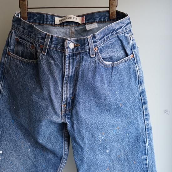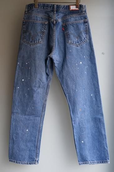 ユーズドのLEVI'S505を使用したリメイクデニムパンツ。ユーズドの505をベース34〜36インチをウェストを32インチ、レングスを修正し、全体的にペイントが施されています。 カラーも絶妙に違い全てが1点モノのアイテムです。 更に、ペイントを散らしたり、シルエットを変更することによりUSEDの特有の野暮ったさを抑えられた、今シーズンオススメの一本です。