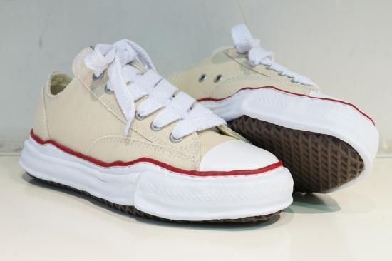 【STANDARD 】 "ピーターソン"オリジナルソール キャンバスローカットデザイナー自身が粘土で型取った、ブランドオリジナルのソールを使用したスニーカー。ピーターソンモデルのスタンダード。パイピングのレッドカラーが特徴的なアイテム。オリジナルソール発売当初に販売をスタートした継続商品です。