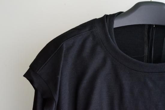 ソフトなウールスムースを使用した生地の長袖カットソーです。 背中心に配色ステッチ、着丈の短いノースリーブとのレイヤード仕様。