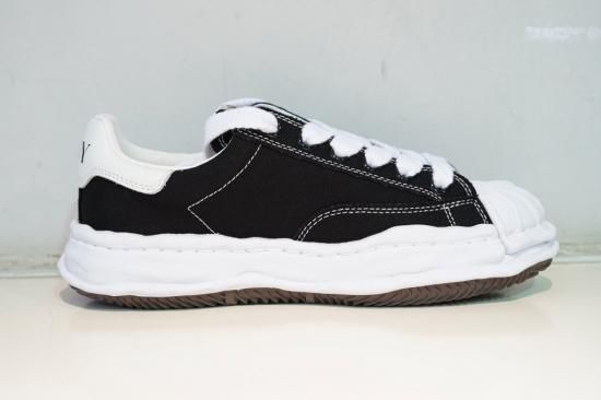 "ブレイキー" オリジナルソールキャンバスローカットスニーカー。デザイナー自身が粘土で型取った、ブランドオリジナルのソールを使用したスニーカー。アウトサイドにMMY刺繍を施したモデル"ブレイキー"のキャンバスローカットスニーカーです。
