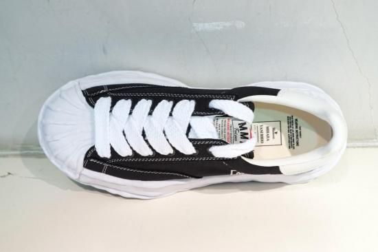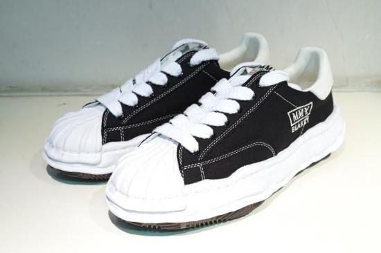 "ブレイキー"オリジナルソール キャンバスローカットスニーカー。デザイナー自身が粘土で型取った、ブランドオリジナルのソールを使用したスニーカー。"ブレイキー"モデルスタンダード。キャンバスアッパー。MMYとモデル名をアッパーに刺繍。