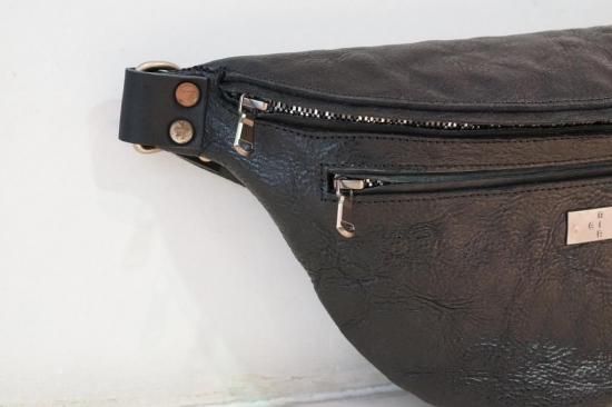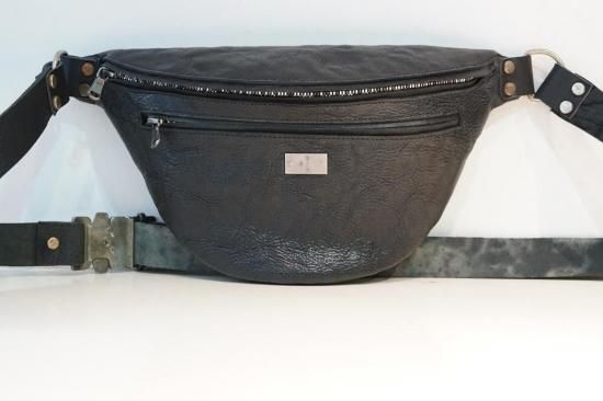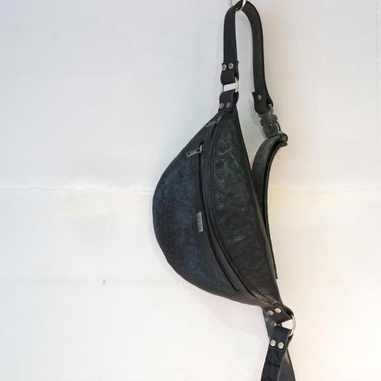 ・タンニン鞣しのホースハイドをシュリンク加工を施したレザーを使用したウェスト、ボディーバッグ