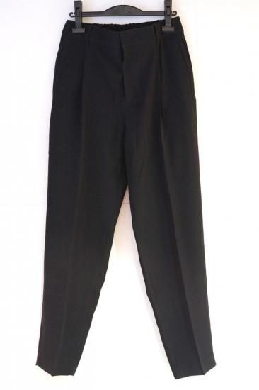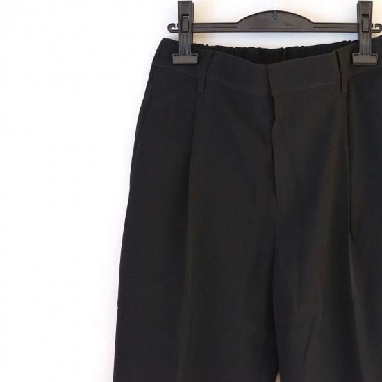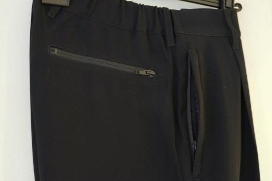 撥水加工された膨らみのあるソフトタッチ(ピーチスキン)のポリエステル。ワンタックで程よい太さで履き心地の良いシルエット、両脇、ピスポケットにファスナーを装備。後ろ帯はゴム仕様で動きが楽です。