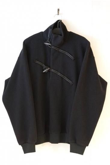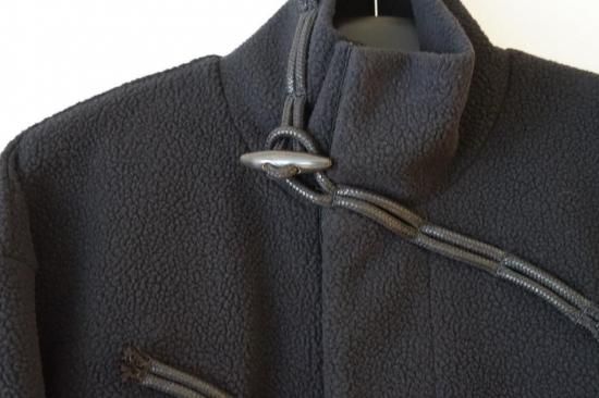 リサイクルポリエステルで作られた200タイプのボアフリース。POLARTEC®Thermal Proを採用したハイネックプルオーバー、トグル釦は水牛を採用。