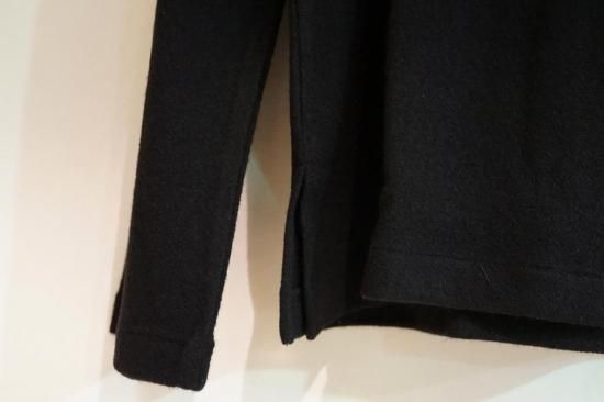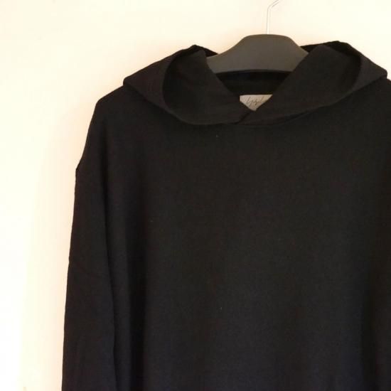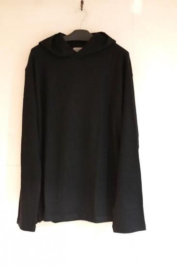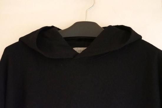 スーパー120という非常に細い高級ウール天竺を使用したフード付き長袖カットソー。