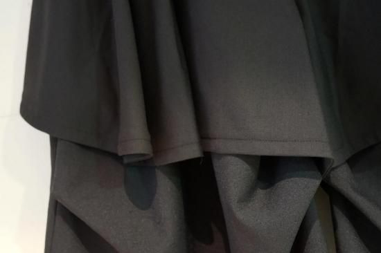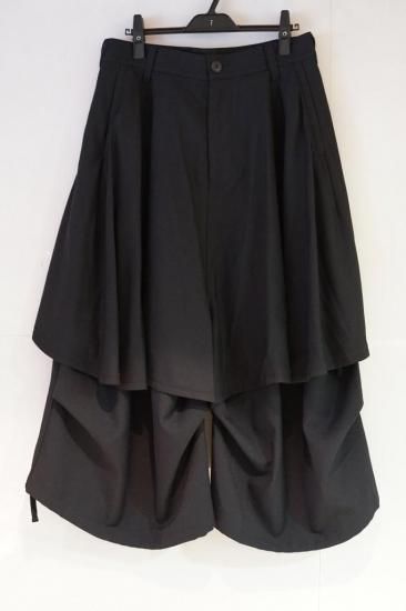 異なる2素材のレイヤーにより、まるでレイアードスカートを思わせるボリューム感を更に強調させたモデル8分丈にする事で、着用時の全体ボリュームを調整すると同時にミドルカットスニーカーを引き立たせるレングスコントロール静電防止機能搭載