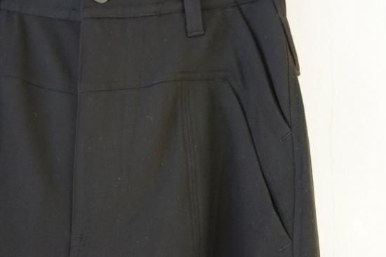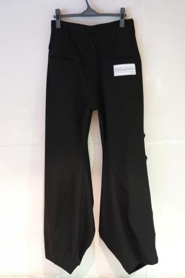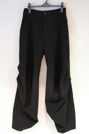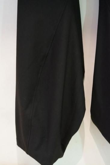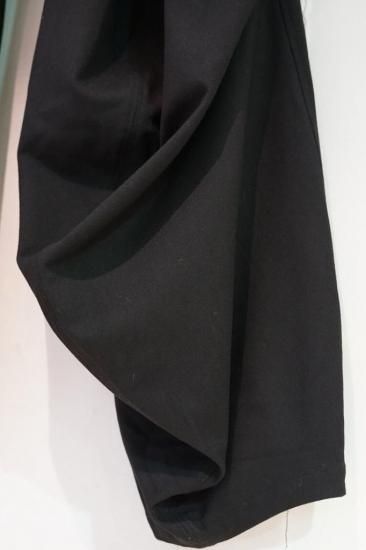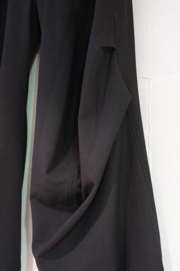 サイドシームの前面カーブと背面の直線を組み合わせることで裾にかけてのフレアーシルエットに、まるでクロワッサンの様な層を感じさせるドレープの表情が特徴。オールシーズン活躍するウォッシャブルパンツ。