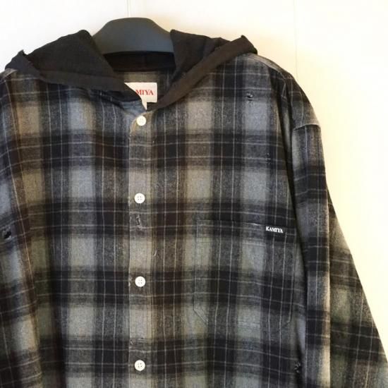 KAMIYA Distressed Hooded Checked Shirt(G15SH055)