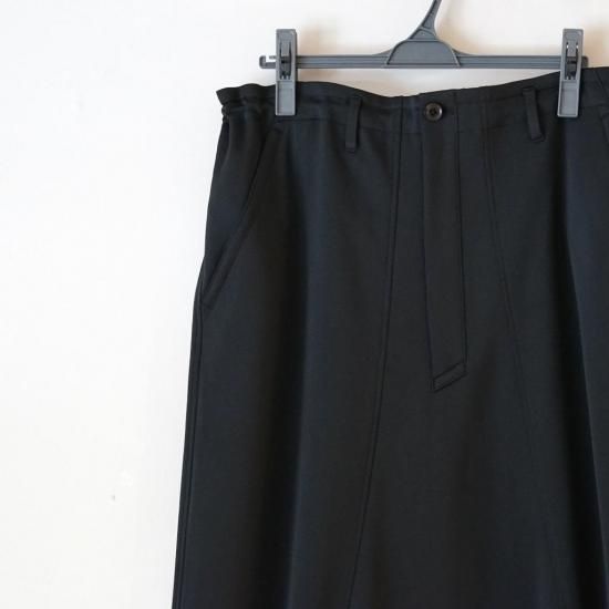 ジャージ素材のサルエルパンツです。あえて無地で表現したトラックパンツのサルエルパンツ、今までありそうでなかったアイテムです。ドローコード付きのウェストを大きくした調節可能タイプ。滑らかな肌触りと柔らかく着心地の良いスムース生地を使用しています。