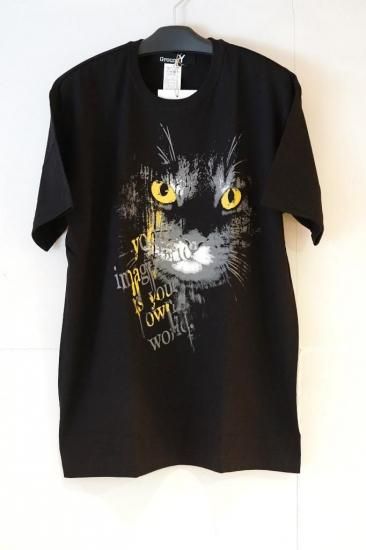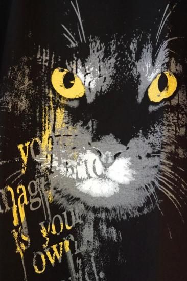 猫の顔が暗闇に溶け込んだようなグラフィックが印象的なプリントカットソーです。
