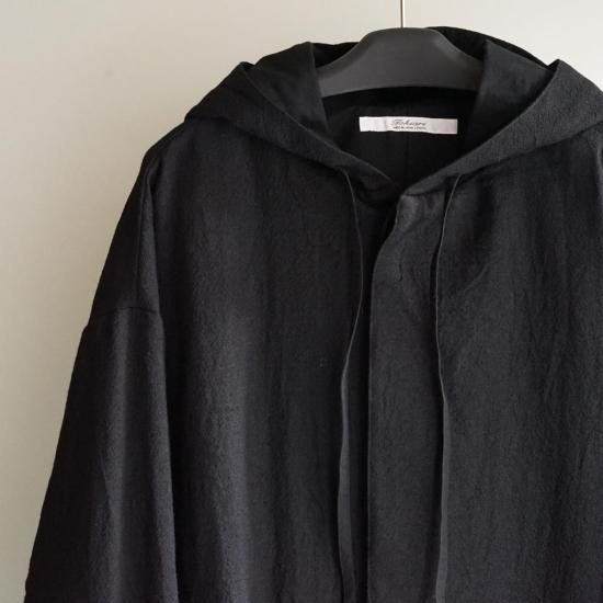 「ポラリス」エレメンタルオーバーシェルフーディは、スウェーデン軍のスノーパーカーをベースに再設計され、再生素材と機能性を追求した一着です。ハイランドウールと、アクセントに同じハイランドウールの残布から制作した岩手の裂織を採用。ゆったりとしたビッグシルエットと実用的なビッグポケット、背面のタックデザインが快適さと機能性を両立します。再生素材と民藝の手仕事が融合し、自然との調和と耐久性を守った、タイムレスなフーディーです。