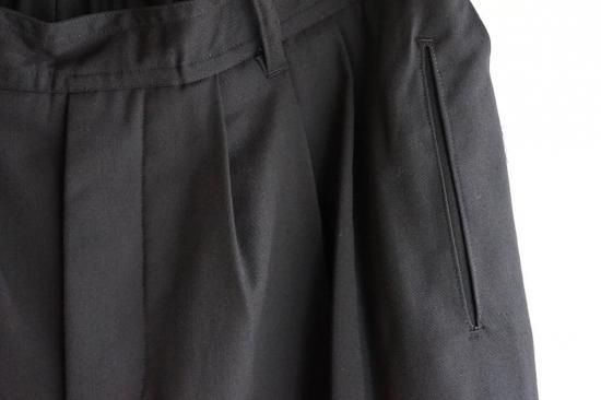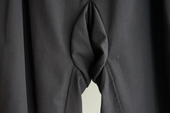 ‘JAN’ スリータックワイドパンツは、洗練とリラックスの「間」を体現したパンツです。このパンツは、まるで着物のように包み込むシルエットを持ち、リラックス感のあるビッグシルエットが特徴です。スリットポケットがミニマルな印象を与え、プリミティブな存在感の水牛ボタンがアクセントになっています。また、円形のユニークなクロッチにより股上は深く、ゆったりと履きやすい一方、見た目はすっきりとしています。このパンツは、日本的な「間」を西洋のパンツに取り入れたデザインで、伝統とモダンを融合させた一着です