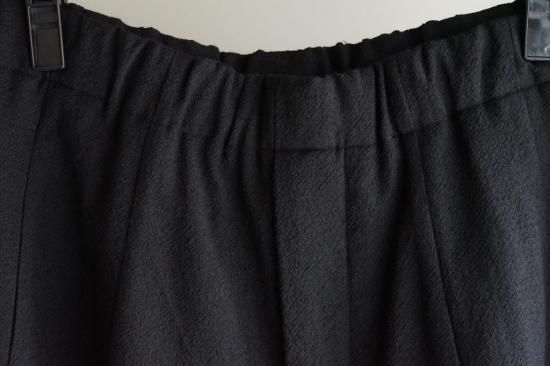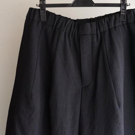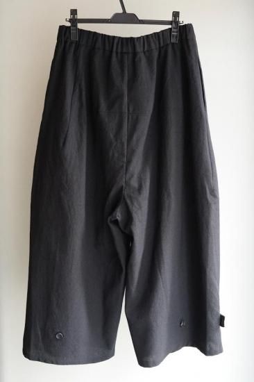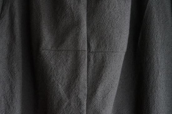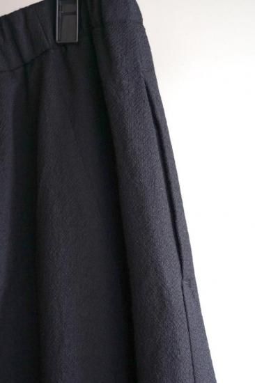 ZERO'ハカマパンツは袴をモチーフにしています。軽くて温かいハイランドウールは、ちりめんのような表情のあるテクスチャーです。パンツとスカートの特性を兼ね備えた開放的なシルエットが特徴です。裾のアジャストベルトでシルエットを変えて、スタイリングを楽しむ事もできます。腰にはスリットポケット、ドローコードとベルトループ、ウエストゴム仕様で快適さを追求しています。ヒップには印象的なクロスステッチが施され、シルエットを美しく整えます。日本の美意識と西洋のパンツスタイルを融合させた、リラックスできるデザインです。