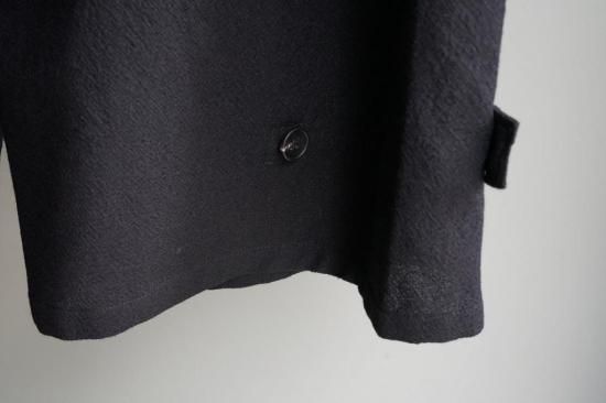その羊毛を使用しまして、タテ糸に双糸、ヨコ糸に繊細な単糸を打ち、梳毛ライクな素材に仕上げ、糸の特徴を生かした加工でワッシャー感ある表情にしました。