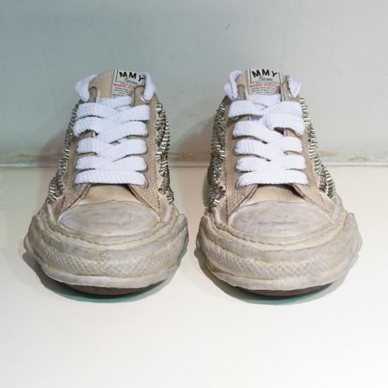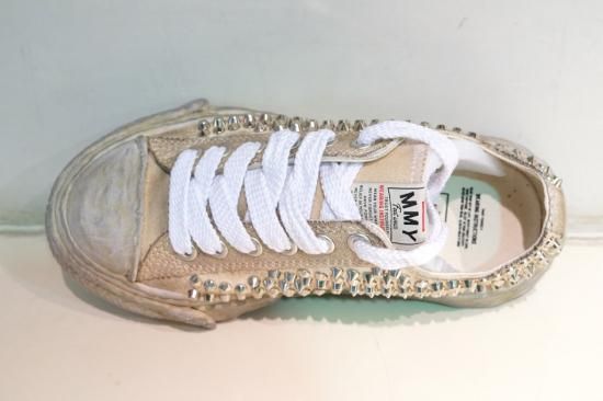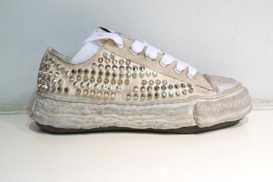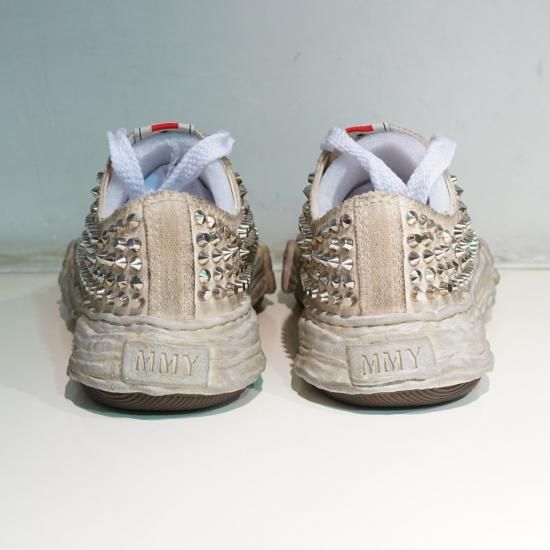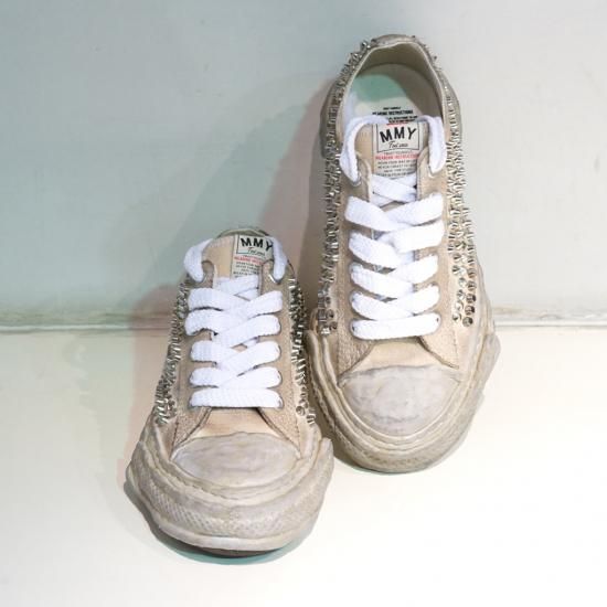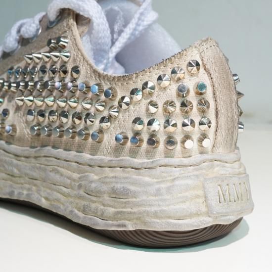 "ピーターソン23" オリジナルソールキャンバススタッズローカットスニーカー。デザイナー自身が粘土で型取った、ブランドオリジナルのソールを使用したスニーカー。3種類のスタッズを施したモデル"ピーターソン23"のキャンバスローカットスニーカーです。スタッズを設置後染め加工を施し履き込んだ雰囲気に仕上がっております。