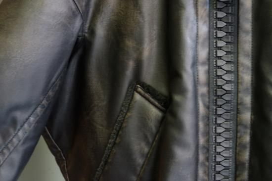 MMYのアイクニックなビックファスナーを使用したフロントZIPデザイン。しなやかでソフトな風合いが特徴。ヴィンテージ加工が施されています。フロントポケット。